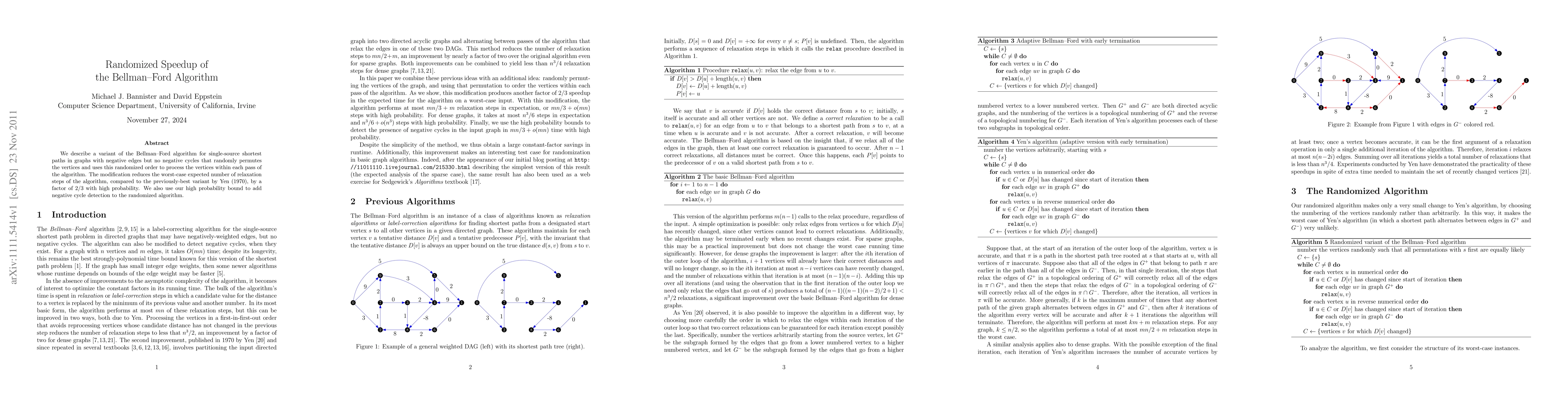 This paper presents a randomized variant of the Bellman-Ford algorithm that reduces the worst-case expected number of relaxation steps by a factor of 2/3 compared to Yen's 1970 method, achieved by randomly permuting vertices. It also integrates negative cycle detection with high probability.