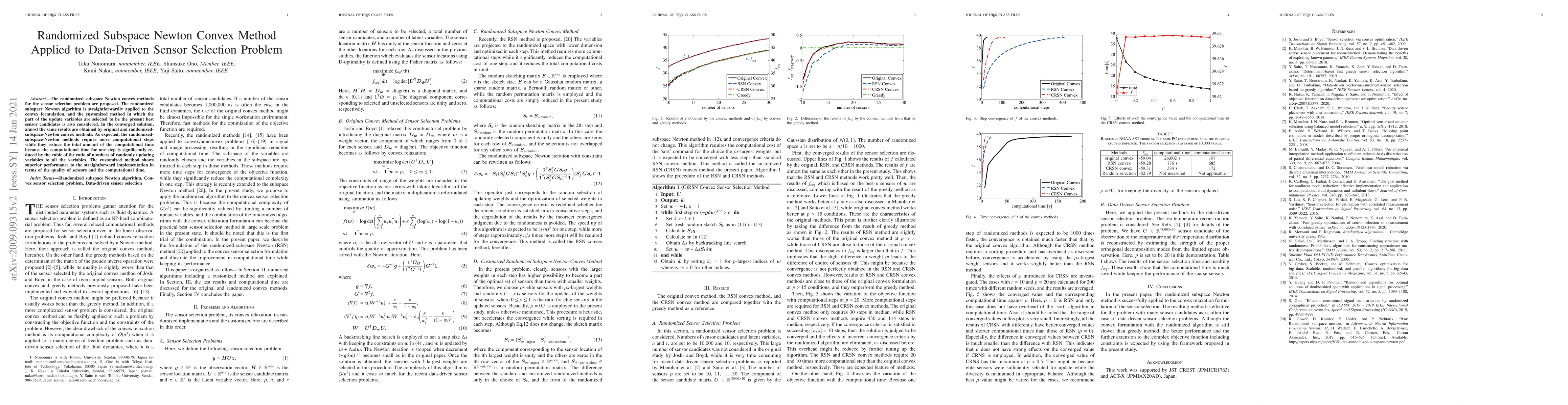This paper proposes randomized subspace Newton convex methods for sensor selection, showing that while they require more computational steps, they significantly reduce individual step time, leading to overall time savings. A customized version of the method that selects the best sensor candidates for updates outperforms the straightforward implementation in sensor quality and computational efficiency.