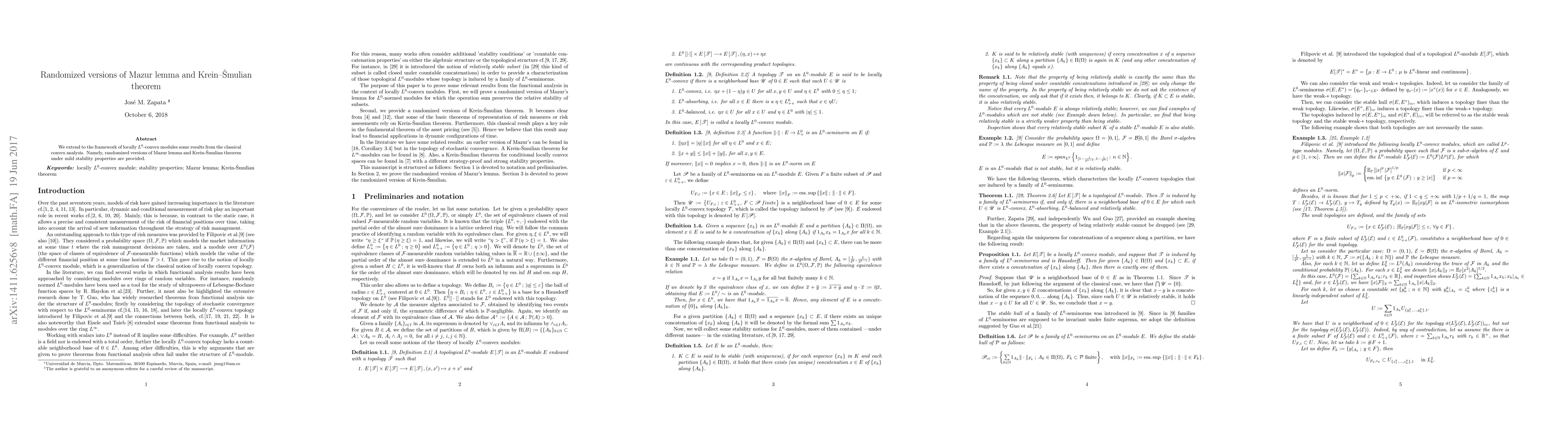 This paper extends classical convex analysis results to locally L^0-convex modules, providing randomized versions of Mazur lemma and Krein-Smulian theorem under certain stability conditions.