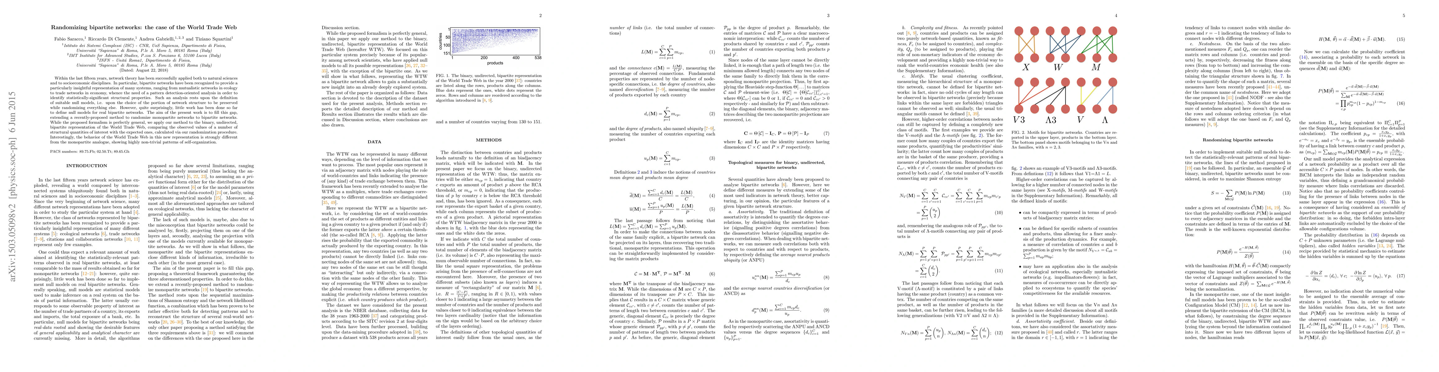 This paper proposes a method to randomize bipartite networks, applying it to the World Trade Web to identify structural patterns. It finds that the World Trade Web exhibits complex self-organization when compared to its monopartite analogue, highlighting the importance of suitable null models in network analysis.