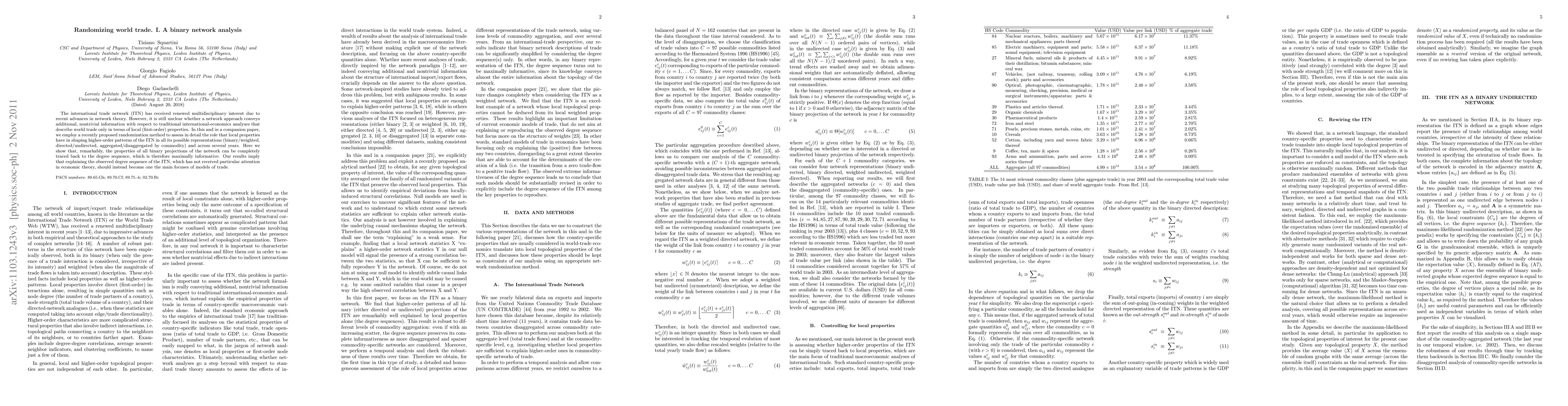 The international trade network (ITN) has received renewed multidisciplinary interest due to recent advances in network theory. However, it is still unclear whether a network approach conveys additional, nontrivial information with respect to traditional international-economics analyses that describe world trade only in terms of local (first-order) properties. In this and in a companion paper, we employ a recently proposed randomization method to assess in detail the role that local properties have in shaping higher-order patterns of the ITN in all its possible representations (binary/weighted, directed/undirected, aggregated/disaggregated by commodity) and across several years. Here we show that, remarkably, the properties of all binary projections of the network can be completely traced back to the degree sequence, which is therefore maximally informative. Our results imply that explaining the observed degree sequence of the ITN, which has not received particular attention in economic theory, should instead become one the main focuses of models of trade.