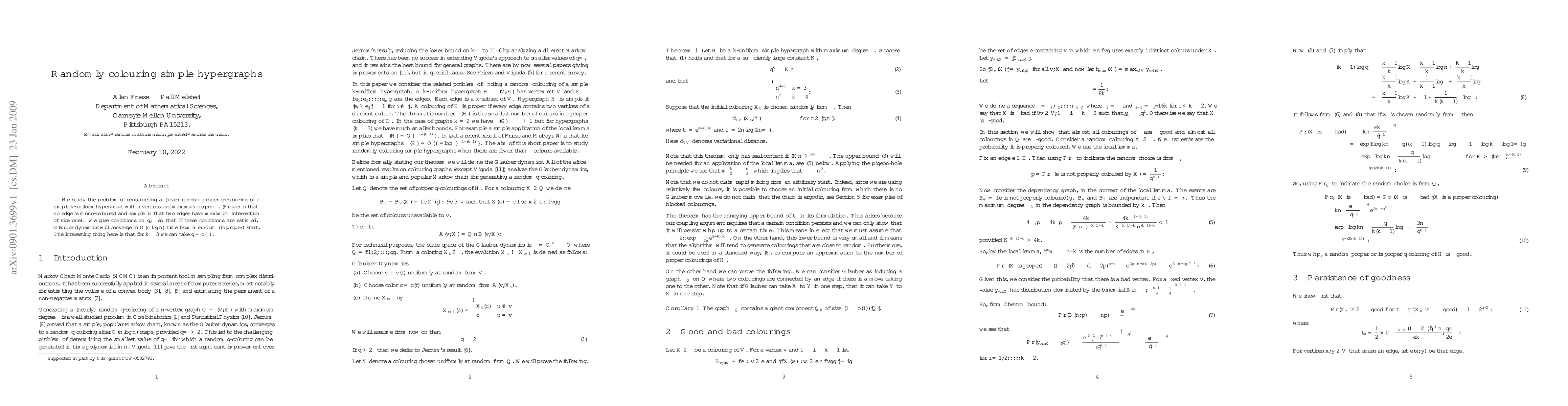 Researchers studied how to color simple hypergraphs with near-random colors, finding conditions under which a random start leads to convergence in a short time frame, especially for small numbers of colors.