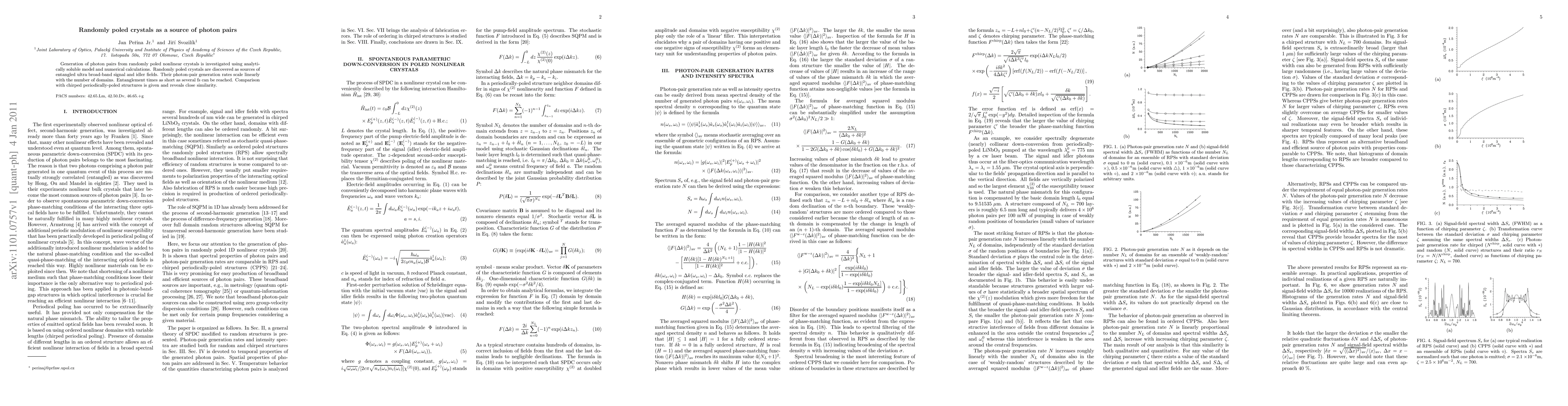Generation of photon pairs from randomly poled nonlinear crystals is investigated using analytically soluble model and numerical calculations. Randomly poled crystals are discovered as sources of entangled ultra broad-band signal and idler fields. Their photon-pair generation rates scale linearly with the number of domains. Entanglement times as short as several fs can be reached. Comparison with chirped periodically-poled structures is given and reveals close similarity.