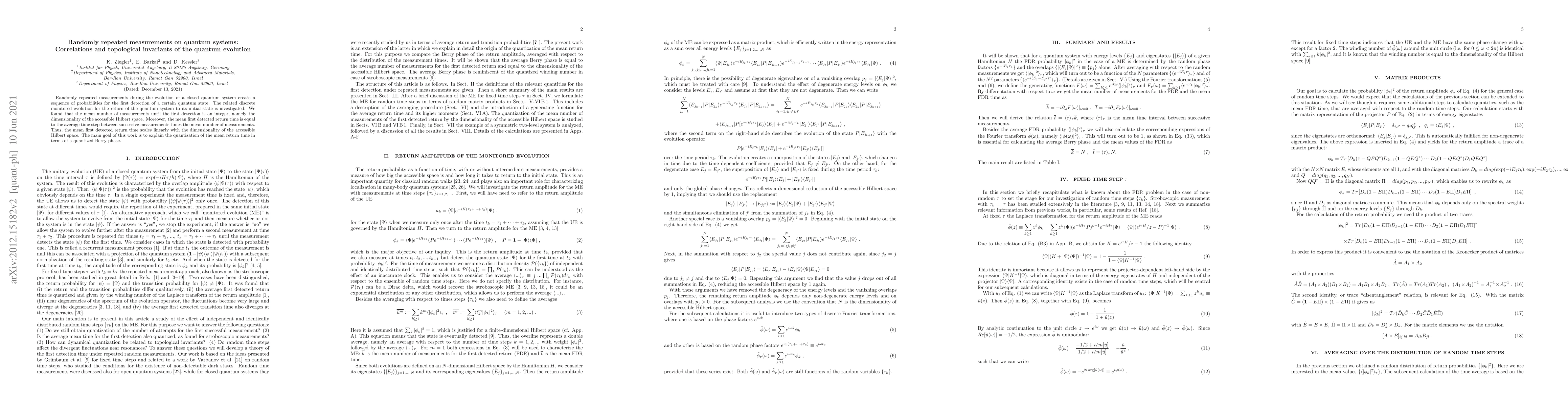 Repeated measurements on quantum systems reveal a quantized return time that scales linearly with Hilbert space dimensionality, hinting at a Berry phase connection.