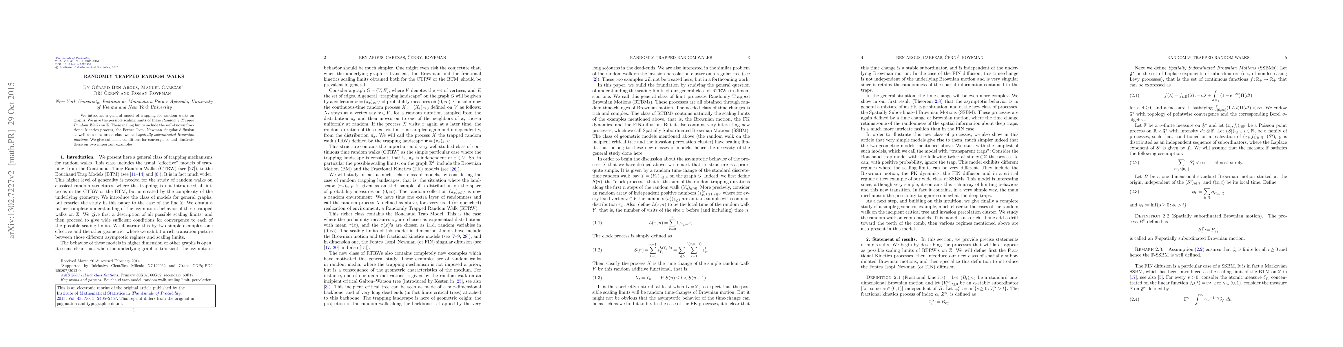 We introduce a general model of trapping for random walks on graphs. We give the possible scaling limits of these Randomly Trapped Random Walks on $\mathbb {Z}$. These scaling limits include the well-known fractional kinetics process, the Fontes-Isopi-Newman singular diffusion as well as a new broad class we call spatially subordinated Brownian motions. We give sufficient conditions for convergence and illustrate these on two important examples.