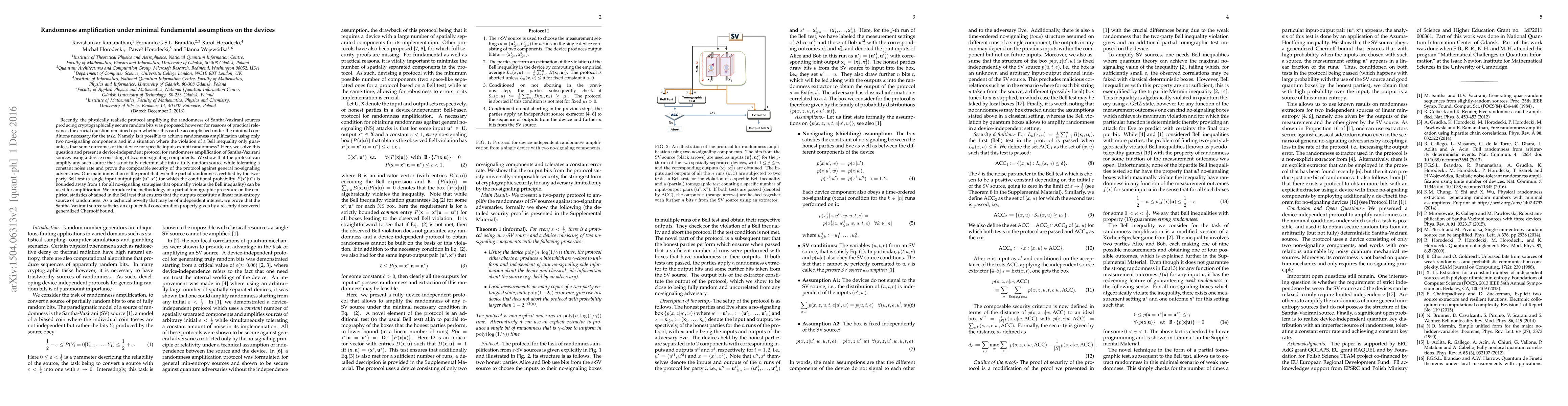 This paper presents a device-independent protocol for amplifying randomness from Santha-Vazirani sources using just two non-signaling devices, demonstrating that partial randomness certified by Bell tests can be effectively utilized for amplification while ensuring composable security against no-signaling adversaries.