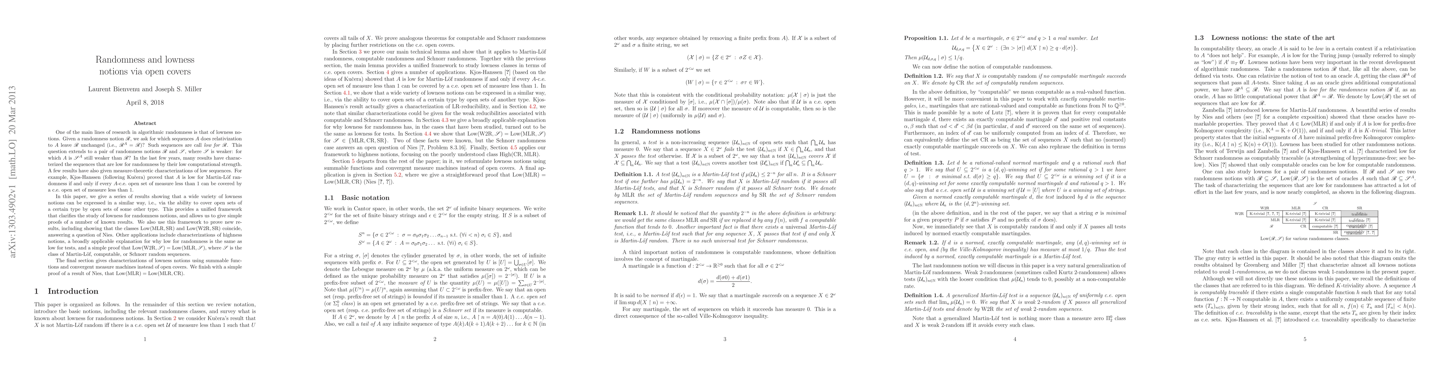 One of the main lines of research in algorithmic randomness is that of lowness notions. Given a randomness notion R, we ask for which sequences A does relativization to A leave R unchanged (i.e., R^A = R)? Such sequences are call low for R. This question extends to a pair of randomness notions R and S, where S is weaker: for which A is S^A still weaker than R? In the last few years, many results have characterized the sequences that are low for randomness by their low computational strength. A few results have also given measure-theoretic characterizations of low sequences. For example, Kjos-Hanssen proved that A is low for Martin-L\"of randomness if and only if every A-c.e. open set of measure less than 1 can be covered by a c.e. open set of measure less than 1. In this paper, we give a series of results showing that a wide variety of lowness notions can be expressed in a similar way, i.e., via the ability to cover open sets of a certain type by open sets of some other type. This provides a unified framework that clarifies the study of lowness for randomness notions, and allows us to give simple proofs of a number of known results. We also use this framework to prove new results, including showing that the classes Low(MLR;SR) and Low(W2R;SR) coincide, answering a question of Nies. Other applications include characterizations of highness notions, a broadly applicable explanation for why low for randomness is the same as low for tests, and a simple proof that Low(W2R;S)=Low(MLR;S), where S is the class of Martin-L\"of, computable, or Schnorr random sequences. The final section gives characterizations of lowness notions using summable functions and convergent measure machines instead of open covers. We finish with a simple proof of a result of Nies, that Low(MLR) = Low(MLR; CR).