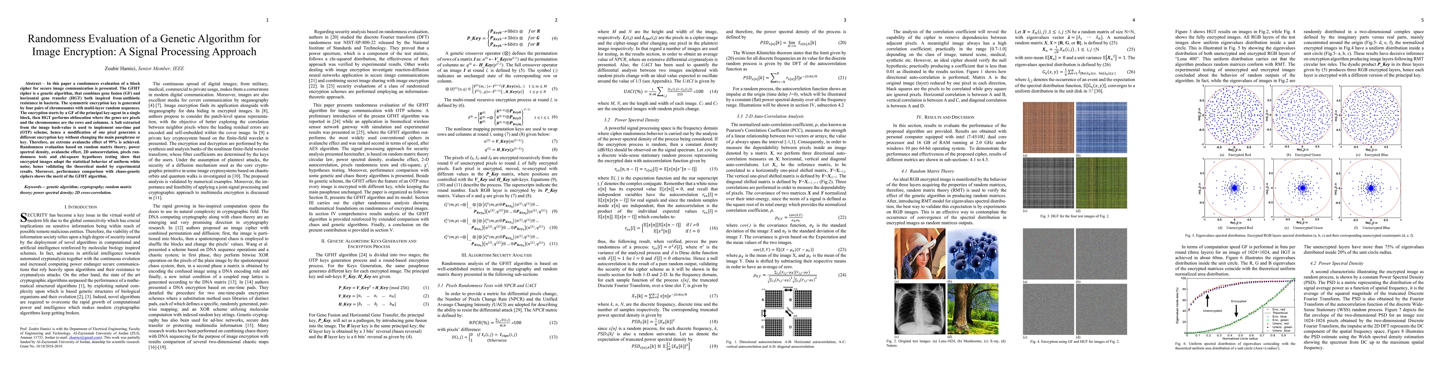 A genetic algorithm called GFHT cipher achieves an extreme avalanche effect of 99% in image encryption, validated through randomness evaluation methods. The scheme outperforms other chaos-genetic ciphers in performance comparison.