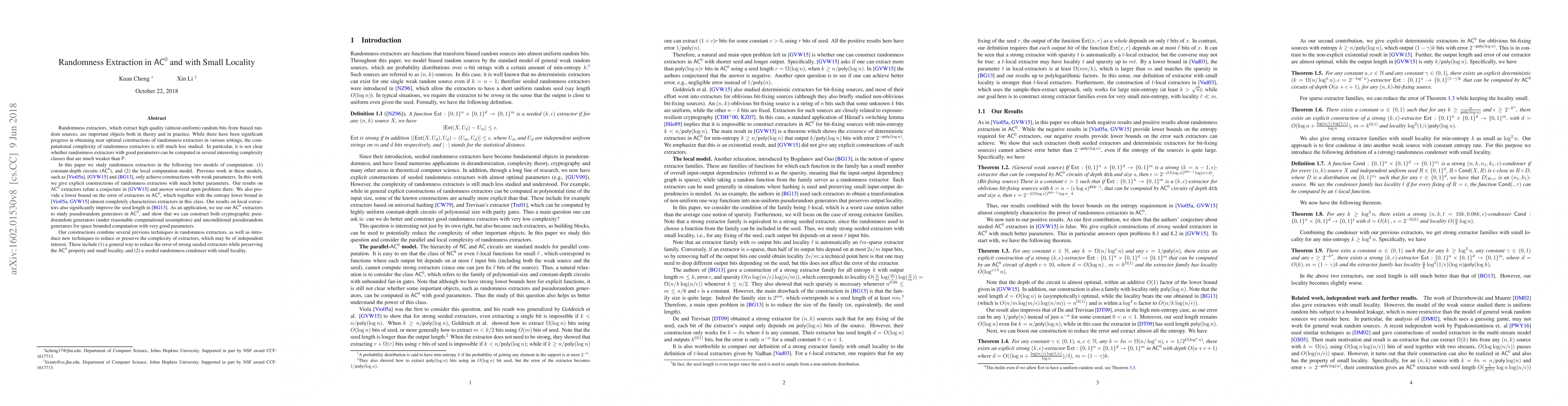 This paper presents improved explicit constructions of randomness extractors within constant-depth circuits (AC0) and the local computation model, achieving better parameters than previous work. The authors also demonstrate applications of these extractors in constructing cryptographic and unconditional pseudorandom generators for space-bounded computation.