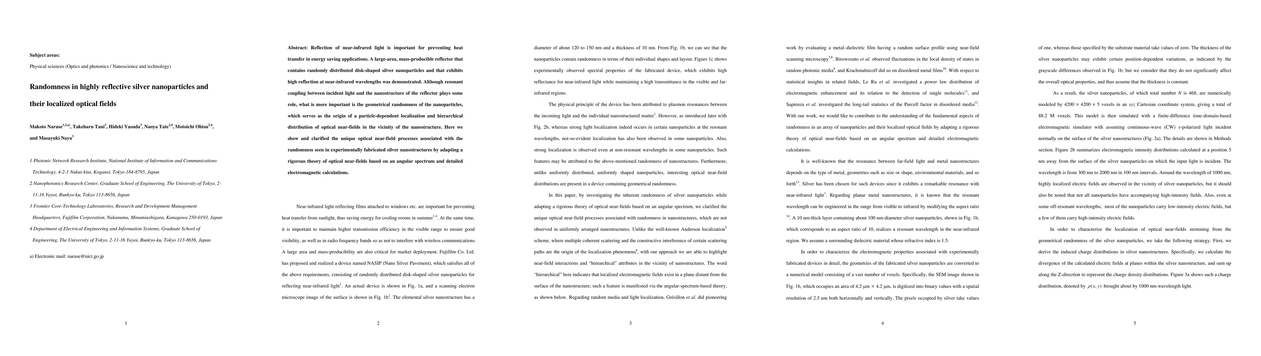 Researchers created a large-area reflector using randomly distributed silver nanoparticles that exhibits high reflection at near-infrared wavelengths. The unique optical near-field processes in these nanostructures rely on the geometrical randomness of the particles rather than resonant coupling.