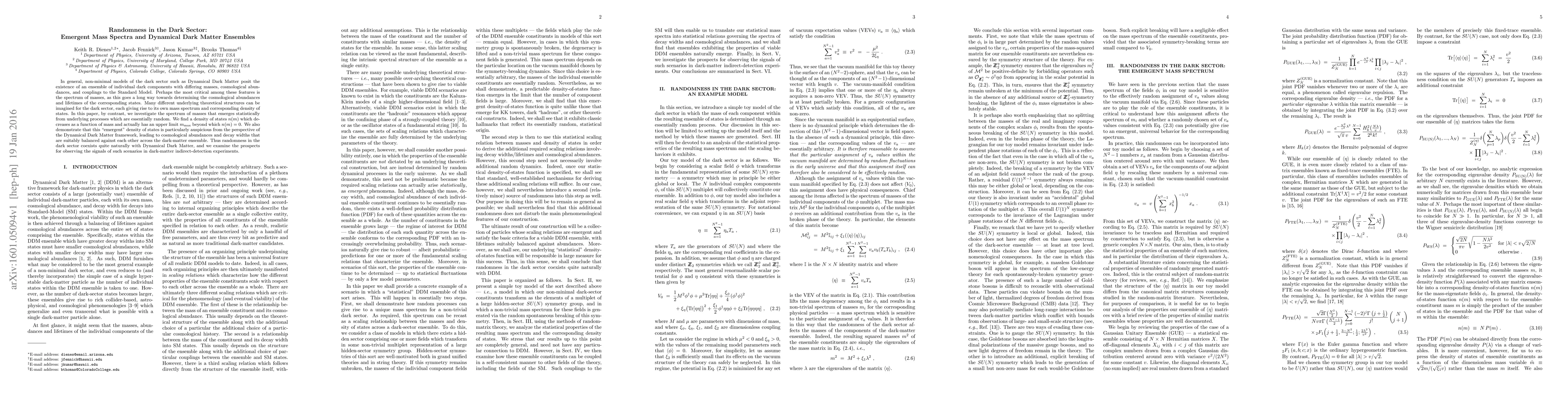 In general, non-minimal models of the dark sector such as Dynamical Dark Matter posit the existence of an ensemble of individual dark components with differing masses, cosmological abundances, and couplings to the Standard Model. Perhaps the most critical among these features is the spectrum of masses, as this goes a long way towards determining the cosmological abundances and lifetimes of the corresponding states. Many different underlying theoretical structures can be imagined for the dark sector, each giving rise to its own mass spectrum and corresponding density of states. In this paper, by contrast, we investigate the spectrum of masses that emerges statistically from underlying processes which are essentially random. We find a density of states $n(m)$ which decreases as a function of mass and actually has an upper limit $m_{\rm max}$ beyond which $n(m)=0$. We also demonstrate that this "emergent" density of states is particularly auspicious from the perspective of the Dynamical Dark Matter framework, leading to cosmological abundances and decay widths that are suitably balanced against each other across the dark-matter ensemble. Thus randomness in the dark sector coexists quite naturally with Dynamical Dark Matter, and we examine the prospects for observing the signals of such scenarios in dark-matter indirect-detection experiments.