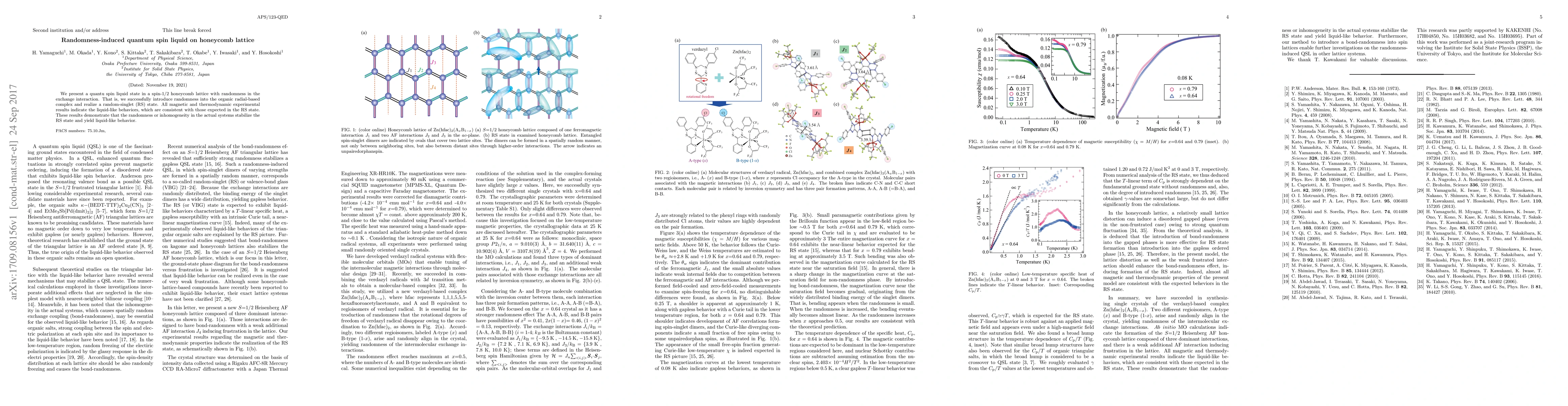 This paper reports the creation of a quantum spin liquid state in a spin-1/2 honeycomb lattice with random exchange interactions, achieving a random-singlet state. Experimental results confirm liquid-like behaviors consistent with the random-singlet state, indicating that randomness stabilizes this state.