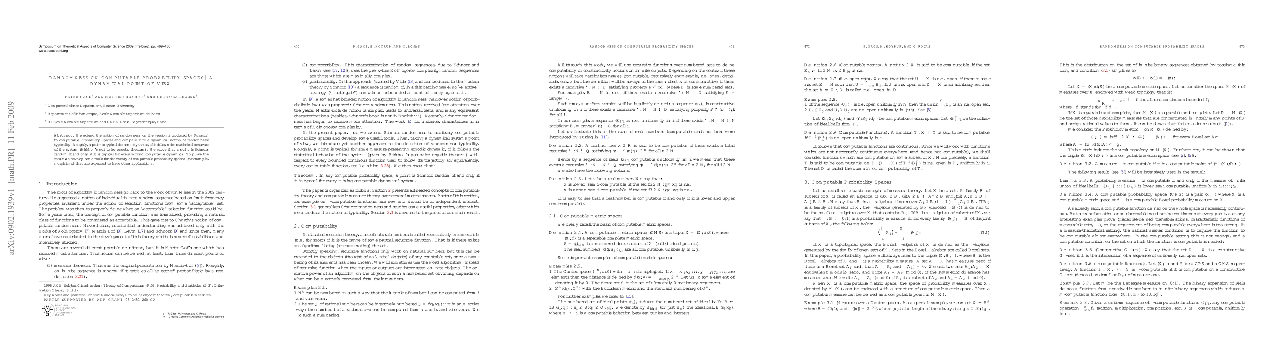 This paper extends Schnorr randomness to computable probability spaces and establishes an equivalence between Schnorr randomness and typicality in mixing computable dynamics. The authors develop new tools for computable probability theory, which may have broader applications.
