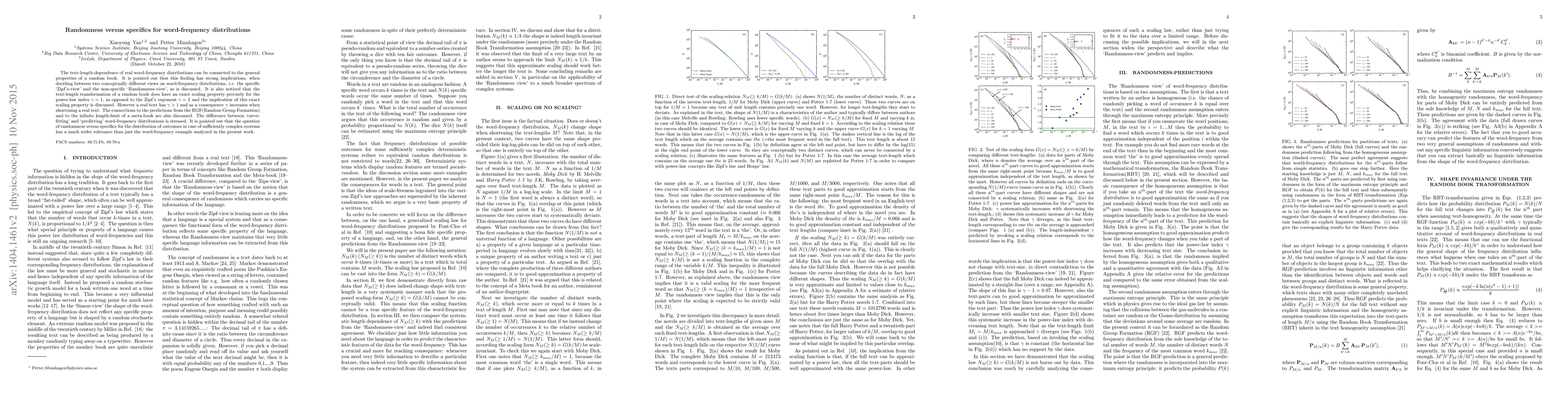This paper explores the relationship between word-frequency distributions in texts and randomness, contrasting the specific "Zipf's-view" with the non-specific "Randomness-view." It finds that while random books exhibit exact scaling for $\gamma=1$, real texts show $\gamma>1$ and increasing $\gamma$ with shorter text lengths, highlighting broader implications for complex systems.