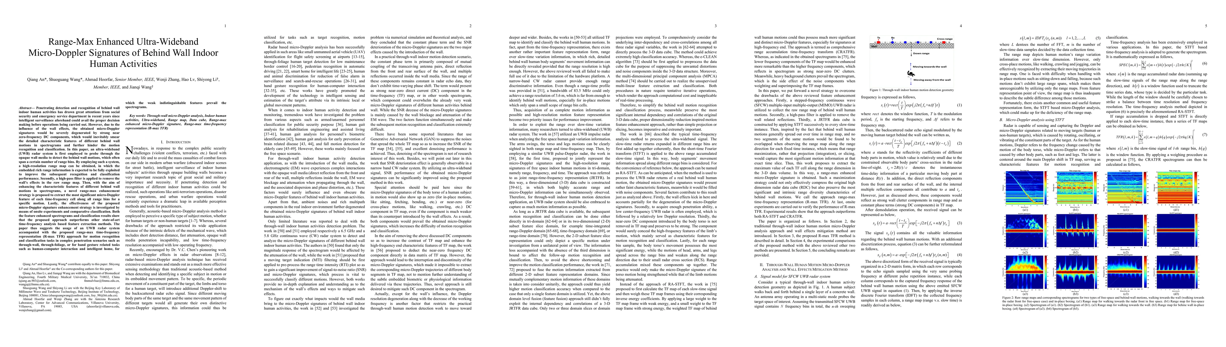 This paper proposes an ultra-wideband radar system to detect and classify behind wall indoor human activities, addressing the issue of wall-induced signal degradation. A range-max enhancement strategy is introduced to extract significant micro-Doppler features, improving recognition and classification performance compared to traditional methods.
