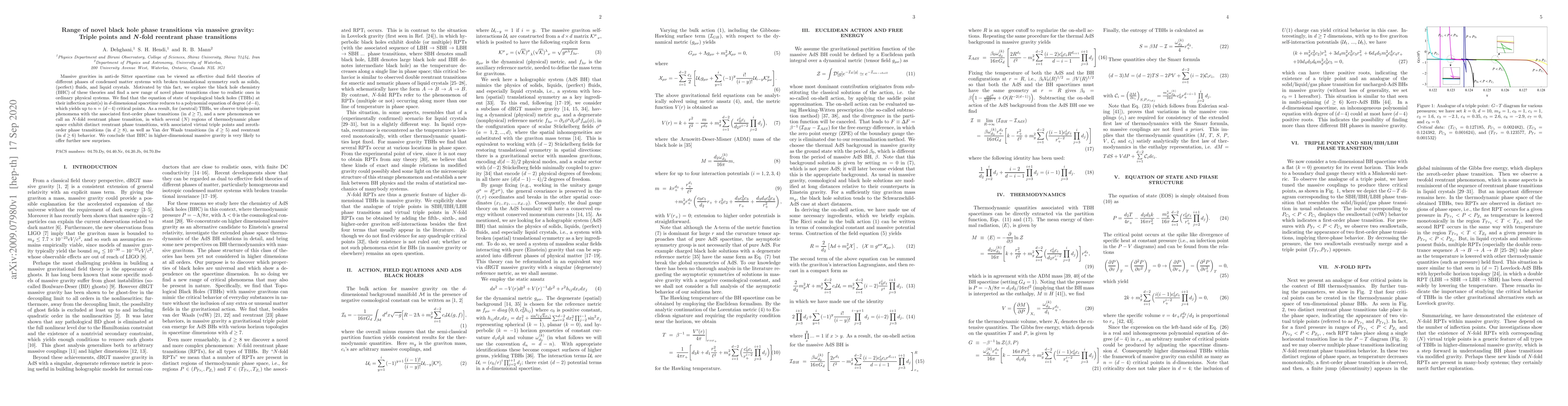 Massive gravities in anti-de Sitter spacetime can be viewed as effective dual field theories of different phases of condensed matter systems with broken translational symmetry such as solids, (perfect) fluids, and liquid crystals. Motivated by this fact, we explore the black hole chemistry (BHC) of these theories and find a new range of novel phase transitions close to realistic ones in ordinary physical systems. We find that the equation of state of topological black holes (TBHs) at their inflection point(s) in $d$-dimensional spacetime reduces to a polynomial equation of degree $(d-4)$, which yields up to $n=(d-4)$ critical points. As a result, for (neutral) TBHs, we observe triple-point phenomena with the associated first-order phase transitions (in $d \ge 7$), and a new phenomenon we call an $N$-fold reentrant phase transition, in which several ($N$) regions of thermodynamic phase space exhibit distinct reentrant phase transitions, with associated virtual triple points and zeroth-order phase transitions (in $d \ge 8$), as well as Van der Waals transitions (in $d \ge 5$) and reentrant (in $d \ge 6$) behavior. We conclude that BHC in higher-dimensional massive gravity is very likely to offer further new surprises.