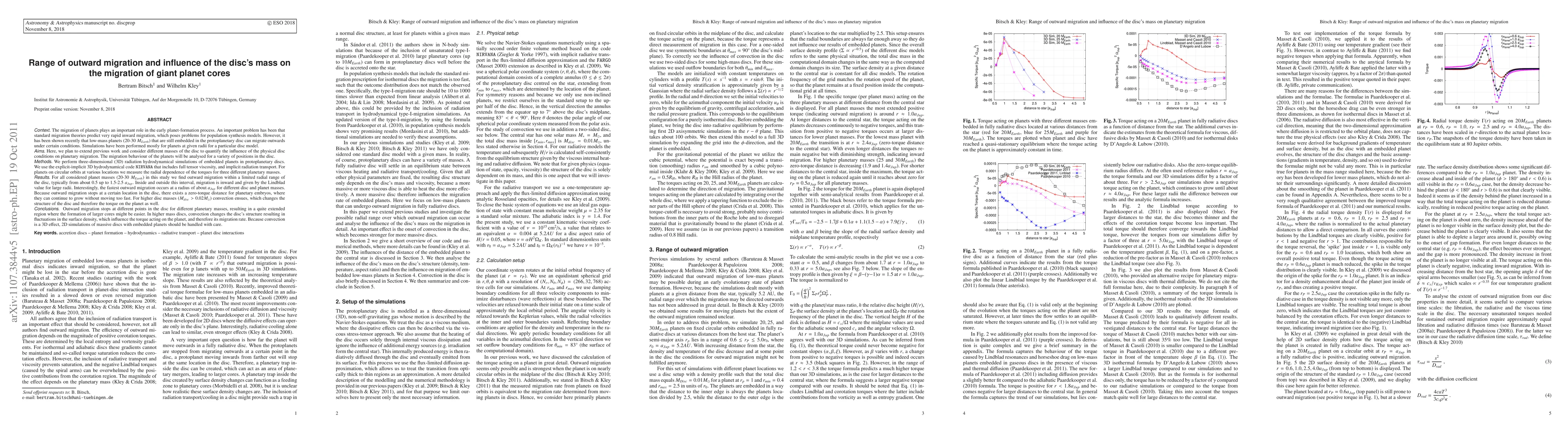 This research investigates the outward migration of giant planet cores in protoplanetary discs under varying disc masses. The study finds that within a specific radial range, planets of 20-30 Earth masses can migrate outward, while higher disc masses induce convection, altering the disc structure and causing fluctuations in the torque and migration patterns.