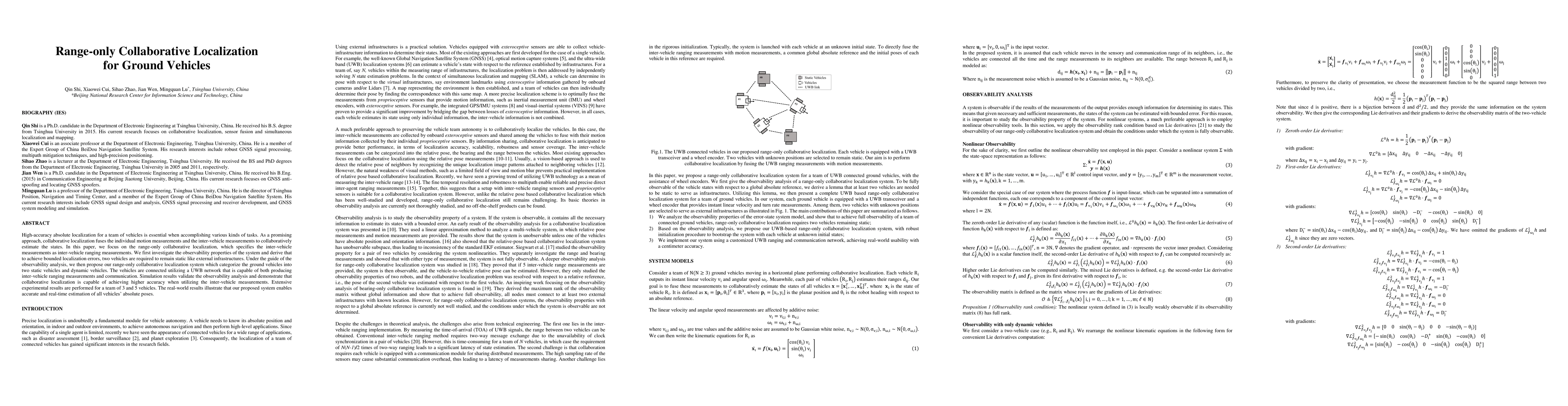 A team of ground vehicles can achieve high-accuracy absolute localization through collaborative range-only sensing, requiring at least two static vehicles to enable bounded localization errors. This method outperforms traditional methods in simulation and real-world experiments with teams of 3 and 5 vehicles.