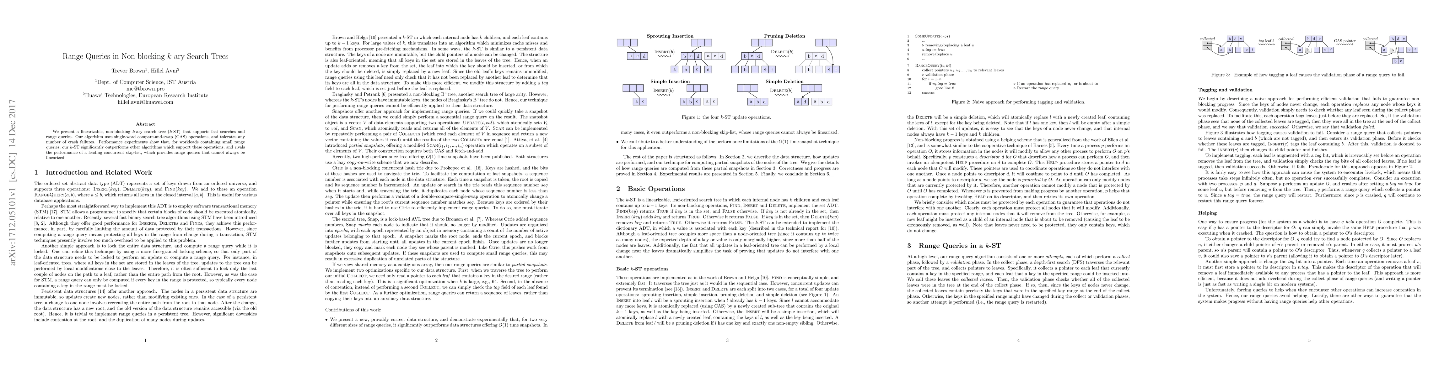 This research presents a linearizable, non-blocking k-ary search tree that supports fast searches and range queries, significantly outperforming other algorithms for workloads containing small range queries and rivaling a concurrent skip-list's performance.