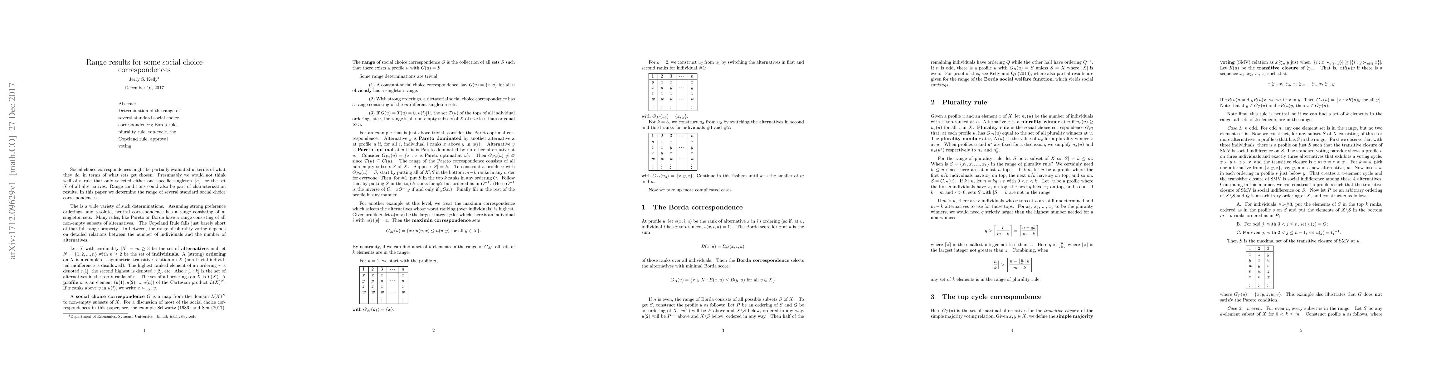 Determination of the range of a variety of social choice correspondences: Plurality voting, the Borda rule, the Pareto rule, the Copeland correspondence, approval voting, and the top cycle correspondence