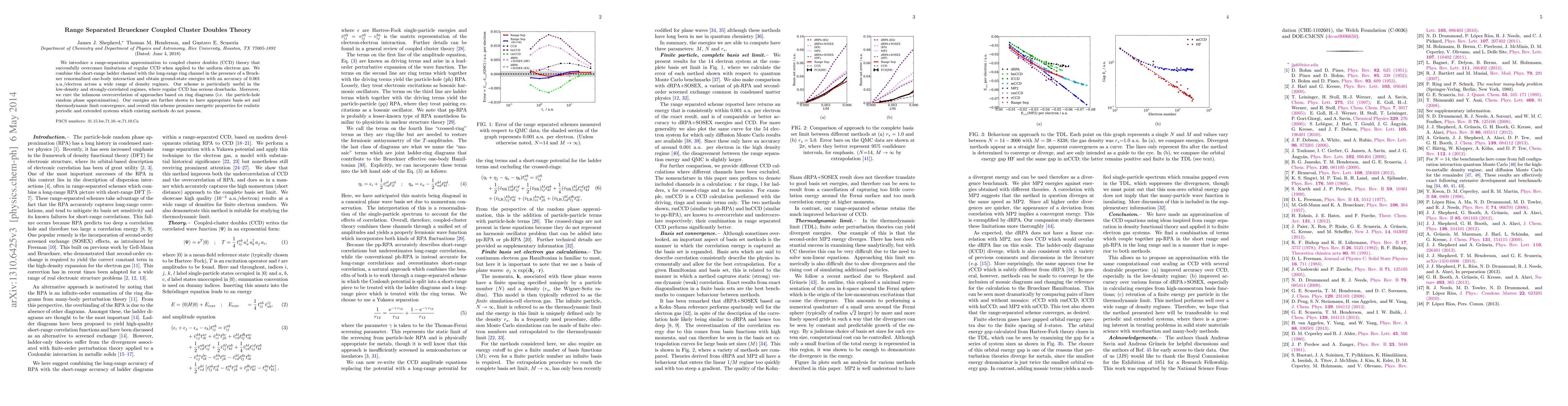 We introduce a range-separation approximation to coupled cluster doubles (CCD) theory that successfully overcomes limitations of regular CCD when applied to the uniform electron gas. We combine the short-range ladder channel with the long-range ring channel in the presence of a Bruckner renormalized one-body interaction and obtain ground-state energies with an accuracy of 0.001 a.u./electron across a wide range of density regimes. Our scheme is particularly useful in the low-density and strongly-correlated regimes, where regular CCD has serious drawbacks. Moreover, we cure the infamous overcorrelation of approaches based on ring diagrams (i.e. the particle-hole random phase approximation). Our energies are further shown to have appropriate basis set and thermodynamic limit convergence, and overall this scheme promises energetic properties for realistic periodic and extended systems which existing methods do not possess.