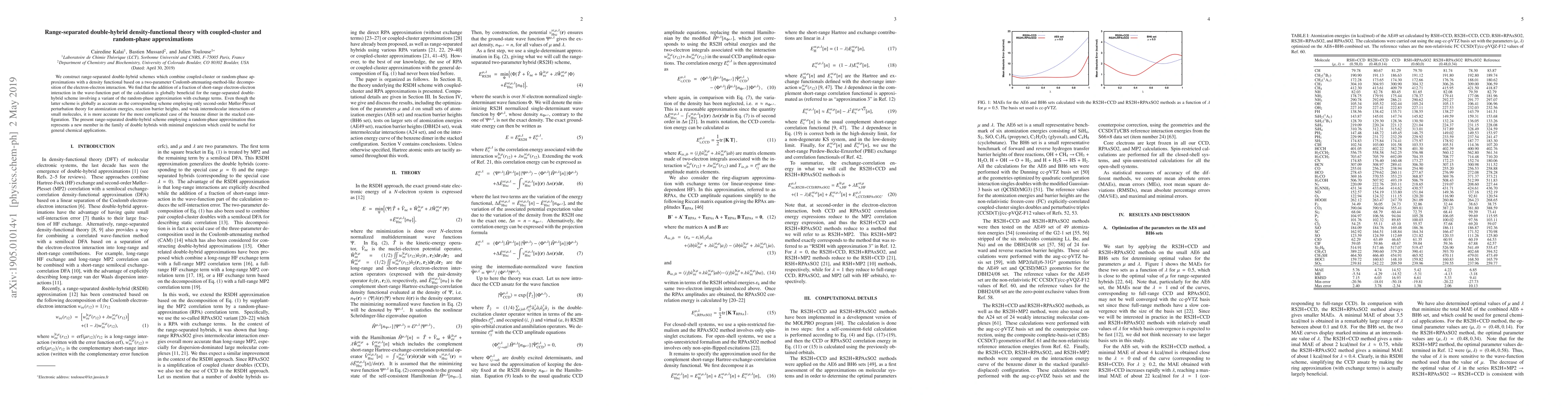 This research develops range-separated double-hybrid density-functional theory, combining coupled-cluster and random-phase approximations with a functional based on a Coulomb-attenuating method. The hybrid scheme, particularly with the random-phase variant, is shown to be globally accurate and more precise for complex systems like the benzene dimer.
