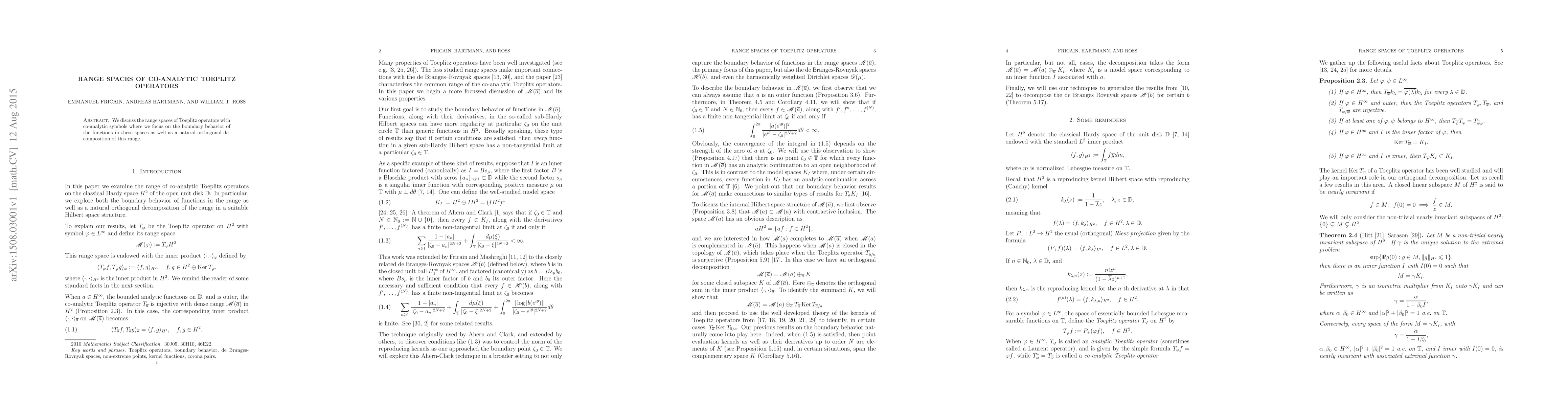 This paper explores the range spaces of co-analytic Toeplitz operators, focusing on their boundary behavior and a natural orthogonal decomposition, shedding light on key properties of these mathematical objects.