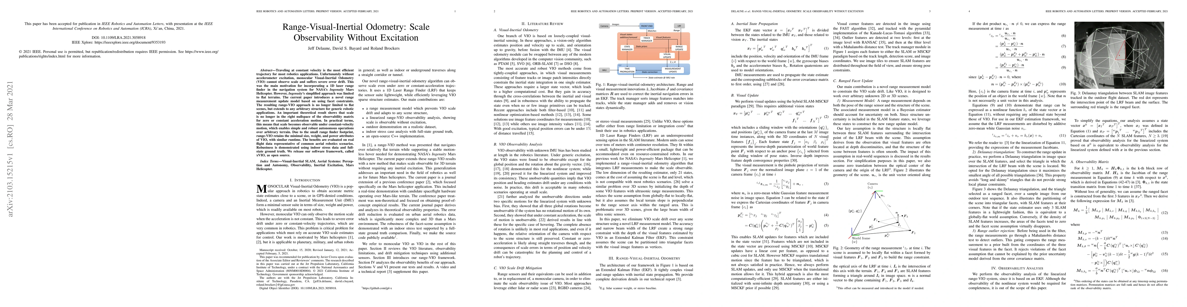 A new method for Visual-Inertial Odometry that enables scale observability without acceleration excitation, allowing for efficient navigation over arbitrary terrain in robotics applications.