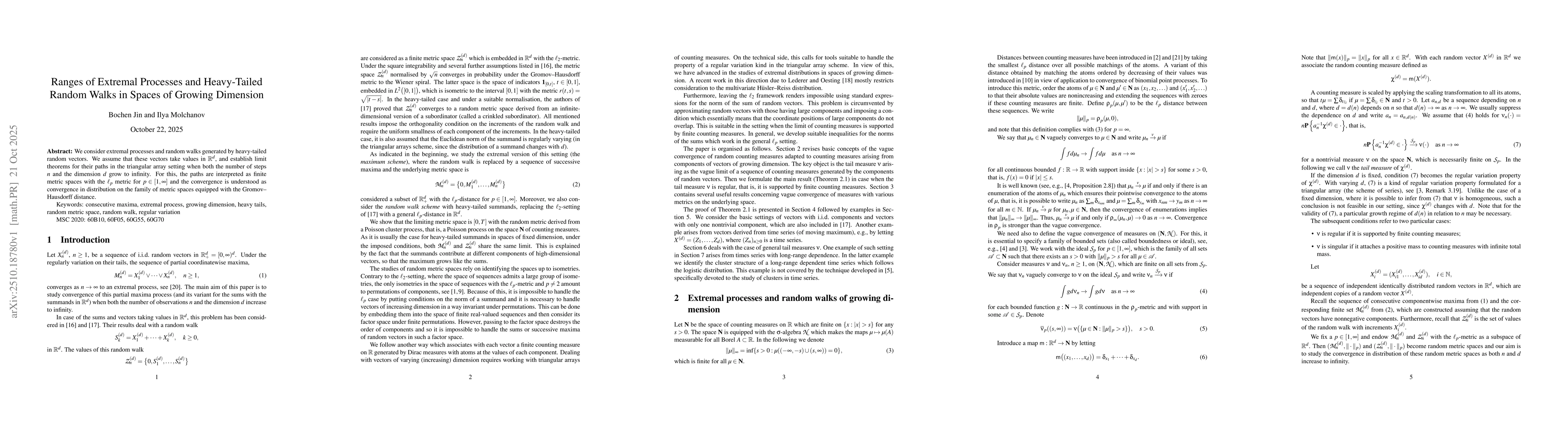 This work contributes to the understanding of complex stochastic systems in high dimensions, with applications in fields such as finance, physics, and engineering. The results provide a theoretical foundation for analyzing extreme events and heavy-tailed phenomena.