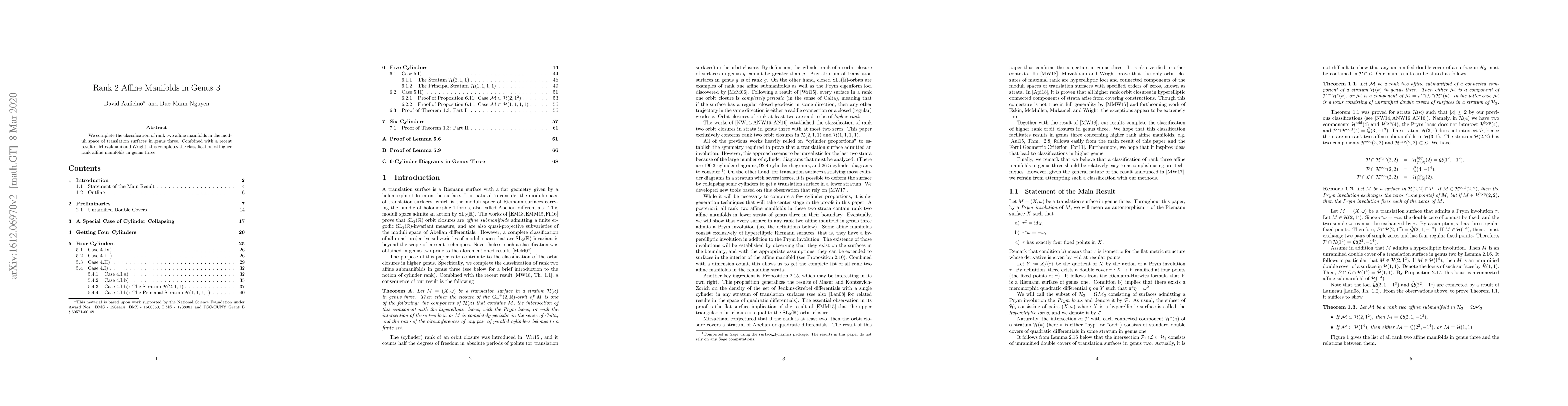 This paper finalizes the classification of rank two affine manifolds within the moduli space of genus three translation surfaces, complementing Mirzakhani and Wright's recent findings to complete the classification for higher rank affine manifolds in this genus.