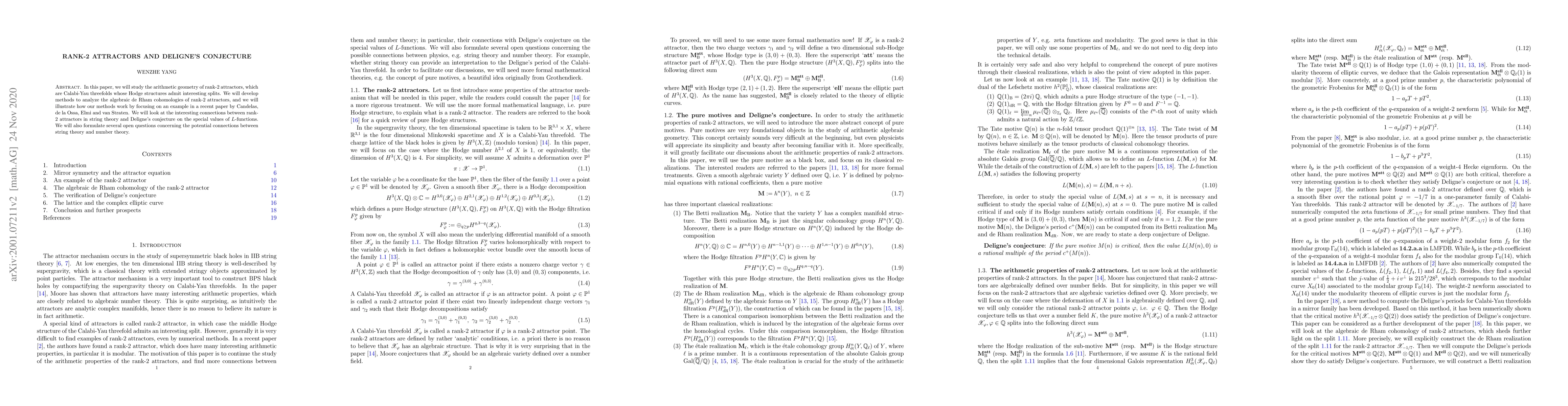In this paper, we will study the arithmetic geometry of rank-2 attractors, which are Calabi-Yau threefolds whose Hodge structures admit interesting splits. We will develop methods to analyze the algebraic de Rham cohomologies of rank-2 attractors, and we will illustrate how our methods work by focusing on an example in a recent paper by Candelas, de la Ossa, Elmi and van Straten. We will look at the interesting connections between rank-2 attractors in string theory and Deligne's conjecture on the special values of $L$-functions. We will also formulate several open questions concerning the potential connections between string theory and number theory.