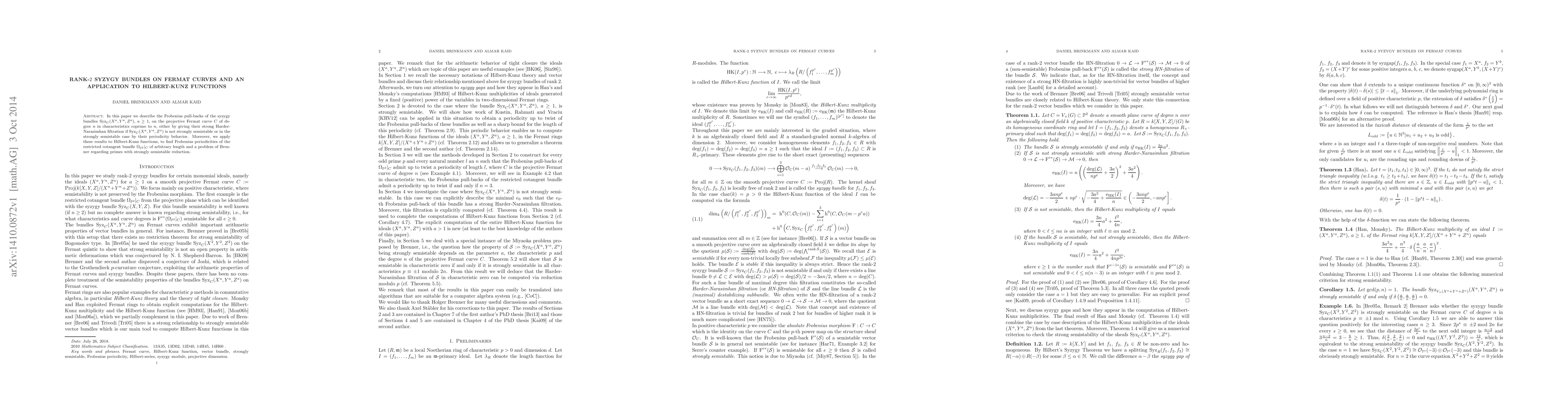 This paper investigates Frobenius pull-backs of syzygy bundles on Fermat curves, detailing their Harder-Narasimhan Filtration or periodicity behavior. The findings are applied to analyze Hilbert-Kunz functions and determine Frobenius periodicities of the restricted cotangent bundle.