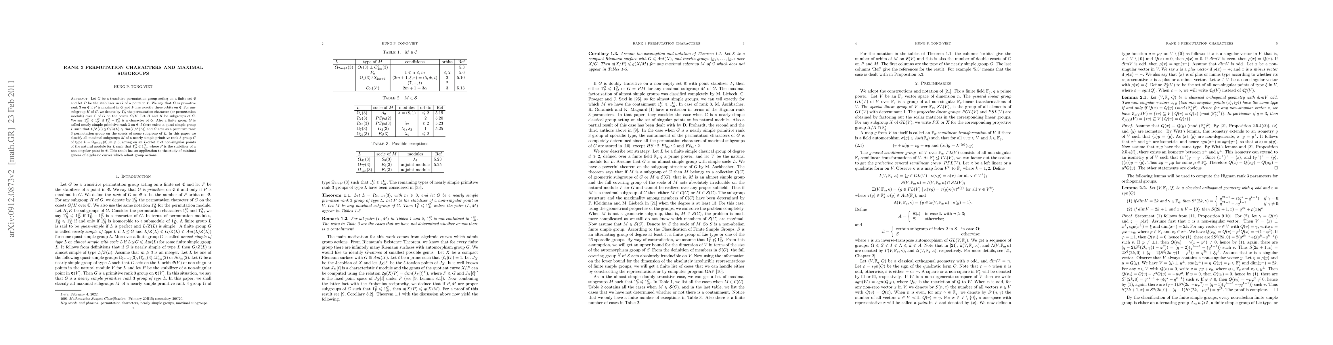 In this paper we classify all maximal subgroups M of a nearly simple primitive rank 3 group G of type L=Omega_{2m+1}(3), m > 3; acting on an L-orbit E of non-singular points of the natural module for L such that 1_P^G <=1_M^G where P is a stabilizer of a point in E. This result has an application to the study of minimal genera of algebraic curves which admit group actions.