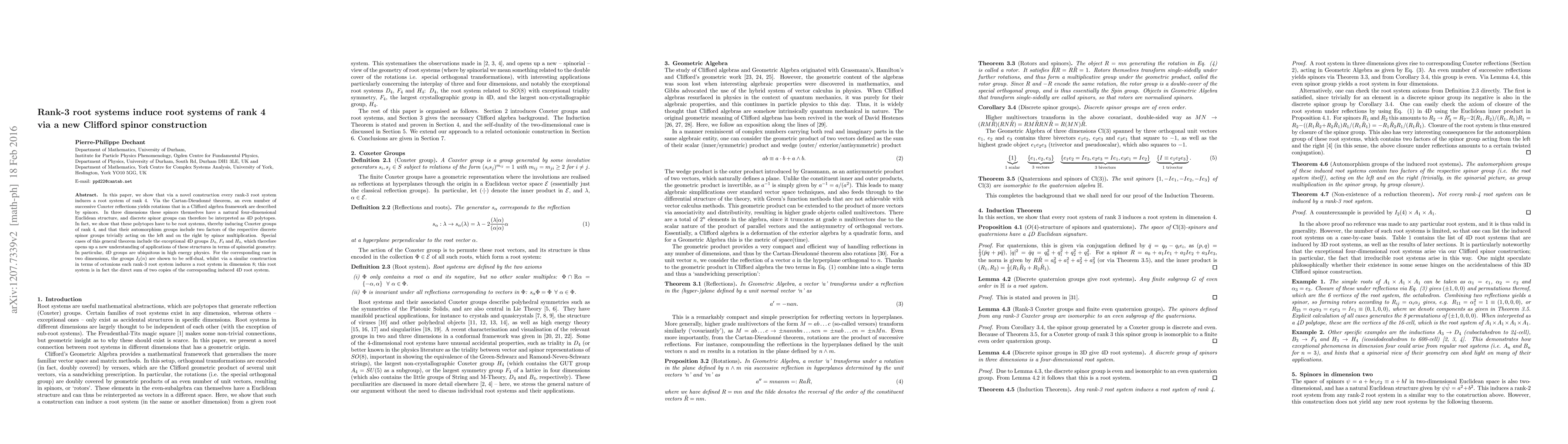 This paper demonstrates a novel construction where rank-3 root systems induce rank-4 root systems through a Clifford spinor framework. The method leverages spinors in a four-dimensional Euclidean space to interpret discrete spinor groups as 4D polytopes, leading to new insights into exceptional 4D groups and their applications in high energy physics.