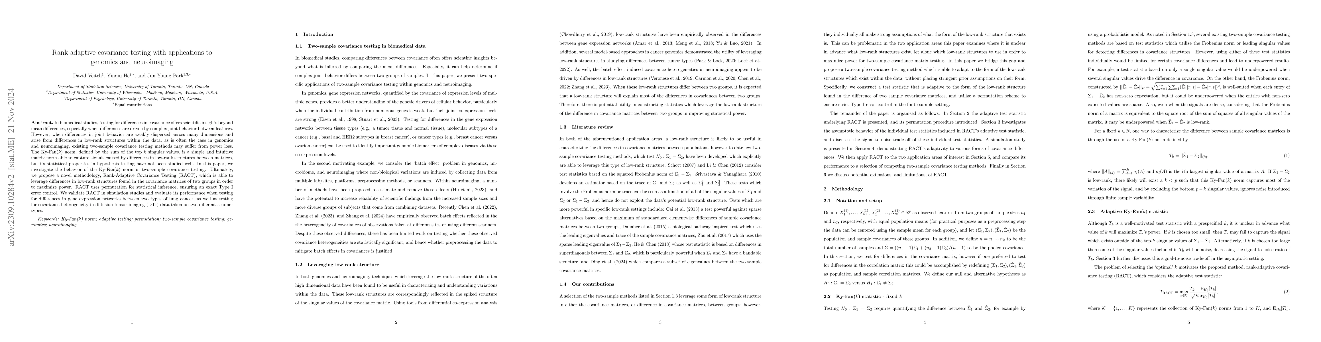 This paper proposes Rank-Adaptive Covariance Changepoint detection (RACC) for dynamic functional connectivity analysis in rs-fMRI data, aiming to partition scans into static FC segments while controlling false positives. RACC enhances existing methods by improving sensitivity and Type 1 error control, demonstrated through simulations and application to schizophrenia spectrum disorder data.