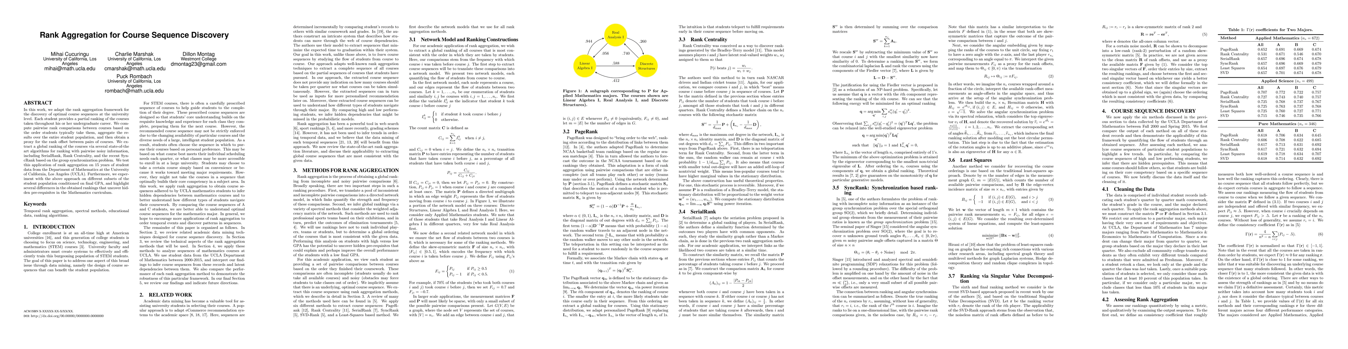 In this work, we adapt the rank aggregation framework for the discovery of optimal course sequences at the university level. Each student provides a partial ranking of the courses taken throughout his or her undergraduate career. We compute pairwise rank comparisons between courses based on the order students typically take them, aggregate the results over the entire student population, and then obtain a proxy for the rank offset between pairs of courses. We extract a global ranking of the courses via several state-of-the art algorithms for ranking with pairwise noisy information, including SerialRank, Rank Centrality, and the recent SyncRank based on the group synchronization problem. We test this application of rank aggregation on 15 years of student data from the Department of Mathematics at the University of California, Los Angeles (UCLA). Furthermore, we experiment with the above approach on different subsets of the student population conditioned on final GPA, and highlight several differences in the obtained rankings that uncover hidden pre-requisites in the Mathematics curriculum.
