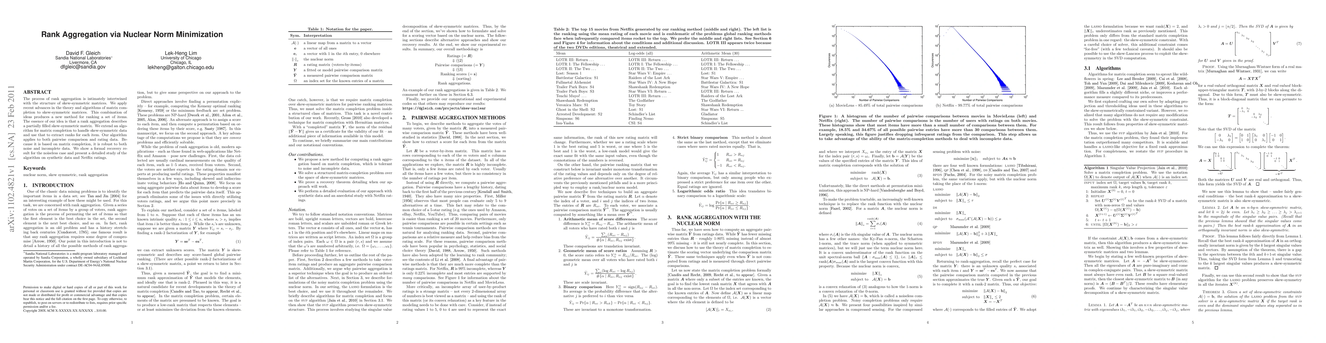 A new method for ranking items is proposed using skew-symmetric matrices and matrix completion, providing a robust solution to rank aggregation with noise and incomplete data.
