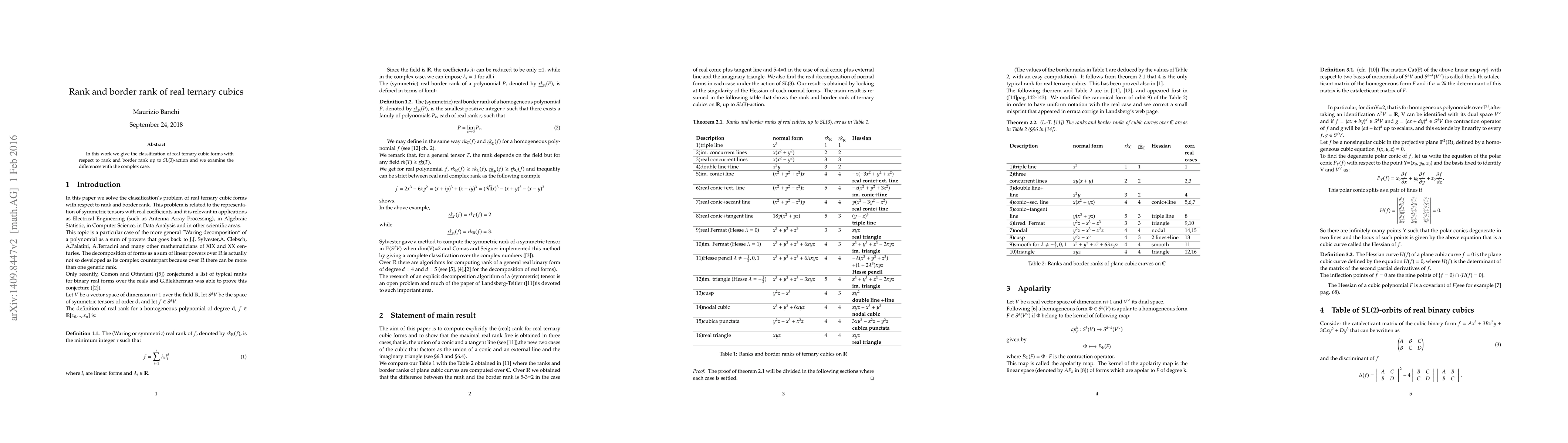 This paper classifies real ternary cubic forms based on their rank and border rank, considering the SL(3)-action, and investigates the distinctions between the real and complex cases.