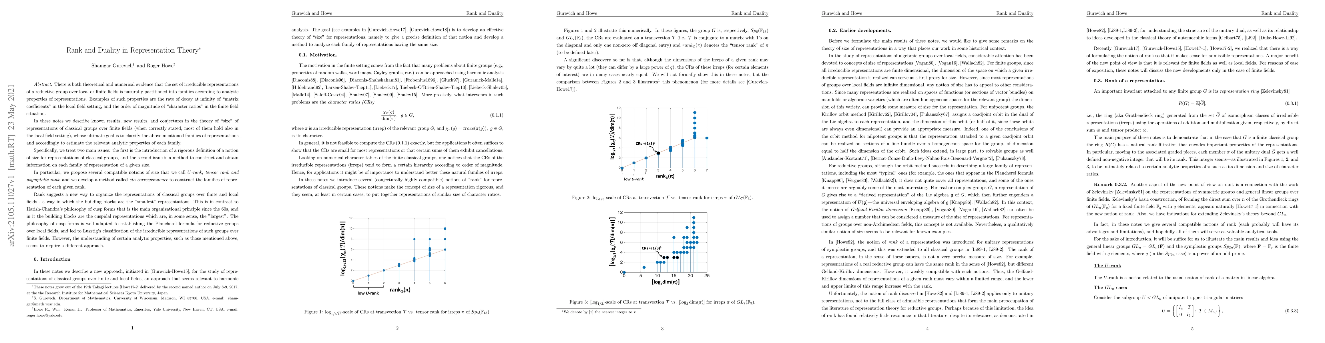 There is both theoretical and numerical evidence that the set of irreducible representations of a reductive group over local or finite fields is naturally partitioned into families according to analytic properties of representations. Examples of such properties are the rate of decay at infinity of "matrix coefficients" in the local field setting, and the order of magnitude of "character ratios" in the finite field situation. In these notes we describe known results, new results, and conjectures in the theory of "size" of representations of classical groups over finite fields, whose ultimate goal is to classify the above mentioned families of representations and accordingly to estimate the relevant analytic properties of each family. Specifically, we treat two main issues: the first is the introduction of a rigorous definition of a notion of size for representations of classical groups, and the second issue is a method to construct and obtain information on each family of representation of a given size. In particular, we propose several compatible notions of size that we call U-RANK, TENSOR RANK and ASYMPTOTIC RANK, and we develop a method called ETA CORRESPONDENCE to construct the families of representation of each given rank. Rank suggests a new way to organize the representations of classical groups over finite and local fields - a way in which the building blocks are the "smallest" representations. This is in contrast to Harish-Chandra's philosophy of cusp forms that is the main organizational principle since the 60s, and in it the building blocks are the cuspidal representations which are, in some sense, the "LARGEST".
