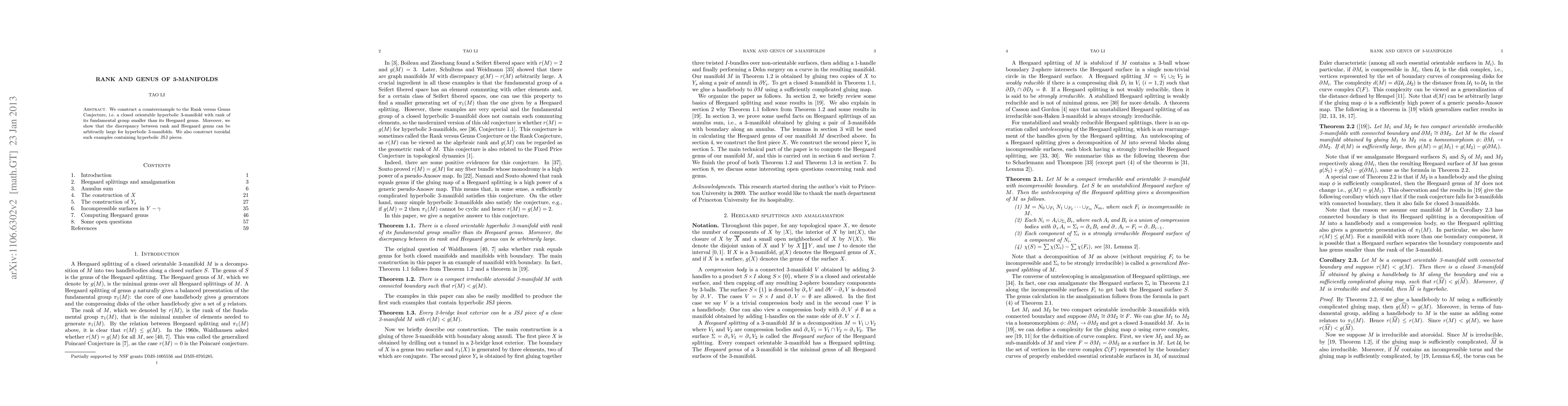 This paper disproves the Rank versus Genus Conjecture by presenting a closed orientable hyperbolic 3-manifold where the rank of its fundamental group is less than its Heegaard genus, demonstrating that the difference between these values can be significant.