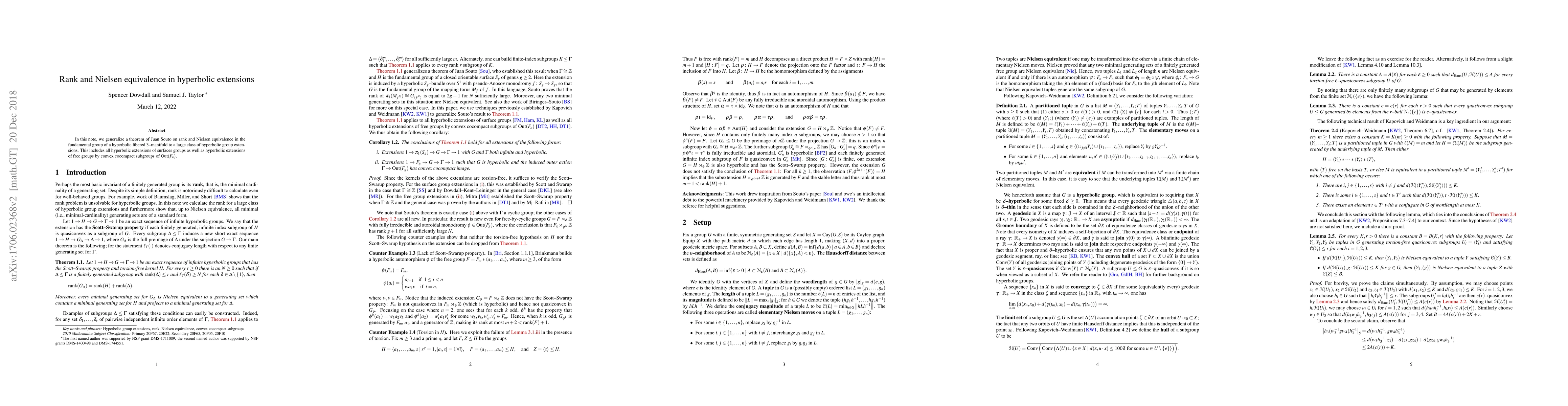 This paper generalizes a theorem on rank and Nielsen equivalence in hyperbolic group extensions to include all hyperbolic surface groups and free groups with convex cocompact subgroups.