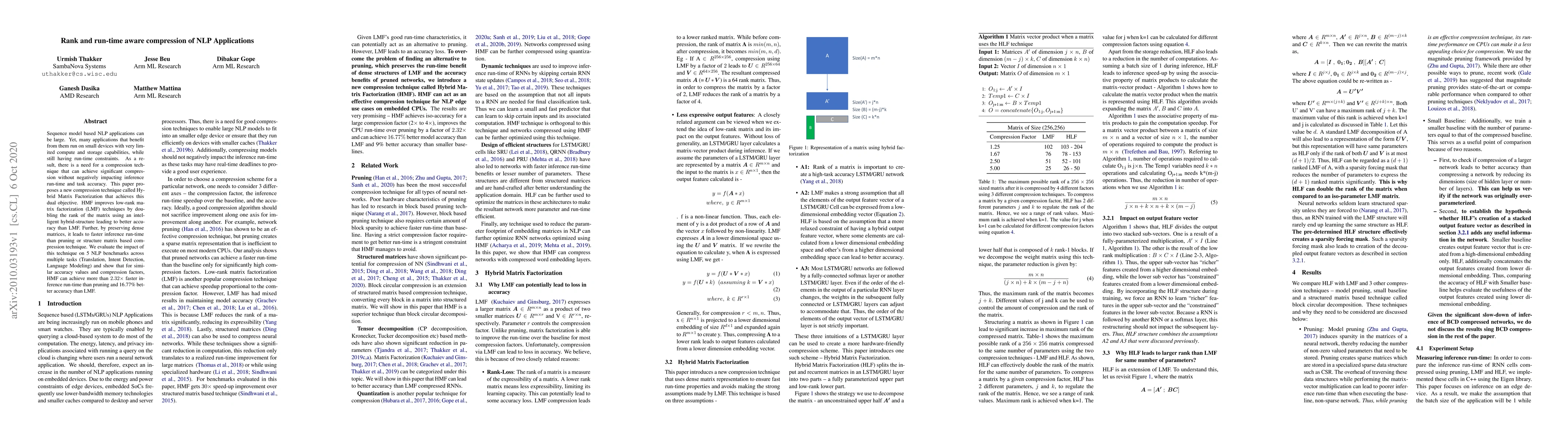 A new compression technique called Hybrid Matrix Factorization improves NLP application accuracy while reducing inference run-time without sacrificing compression ratio. It outperforms traditional methods like pruning and matrix factorization in terms of speed and accuracy.
