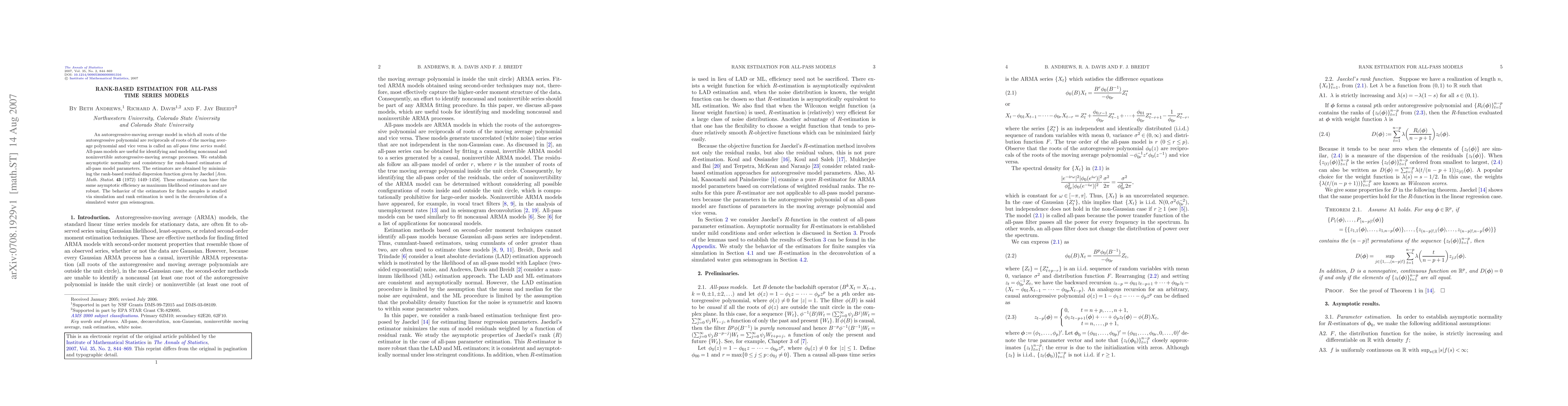 This paper develops rank-based estimators for all-pass time series models, demonstrating their asymptotic normality and consistency. These estimators, which minimize a rank-based residual dispersion function, are shown to be robust and potentially as efficient as maximum likelihood estimators. Simulation studies and an application to deconvolution of a seismogram are presented.