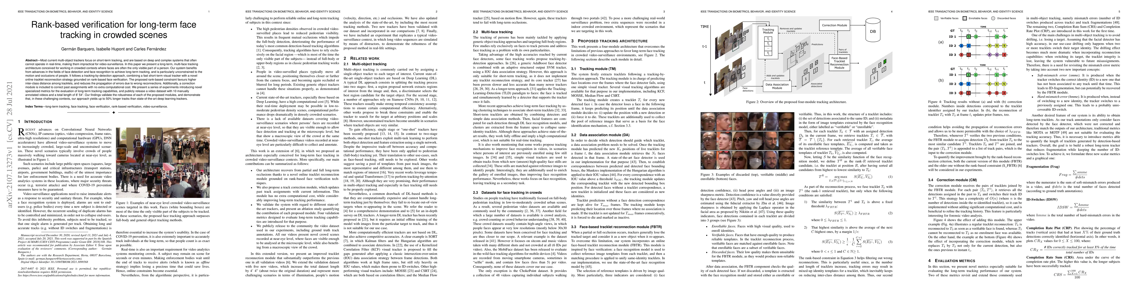 This paper presents a long-term face tracking system designed for crowded scenes, utilizing a rank-based verification method for tracklet reconnection and a correction module to enhance robustness. Experiments show it achieves up to 50% longer tracks compared to state-of-the-art deep learning trackers.