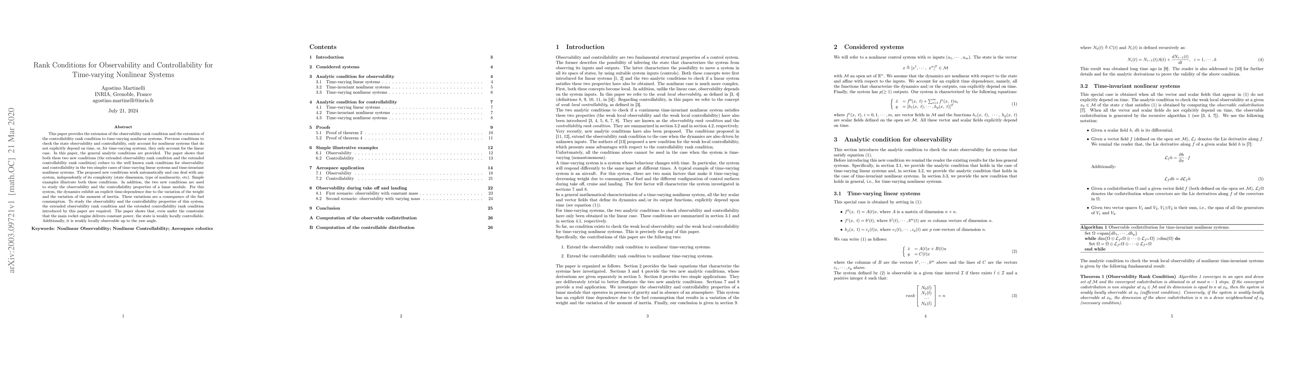 This paper extends observability and controllability rank conditions for time-varying nonlinear systems, providing general analytic conditions that apply to any system complexity. It demonstrates that the new conditions reduce to known rank conditions for simpler cases and uses them to analyze the observability and controllability of a lunar module, showing weak local controllability and observability despite time-dependent dynamics.