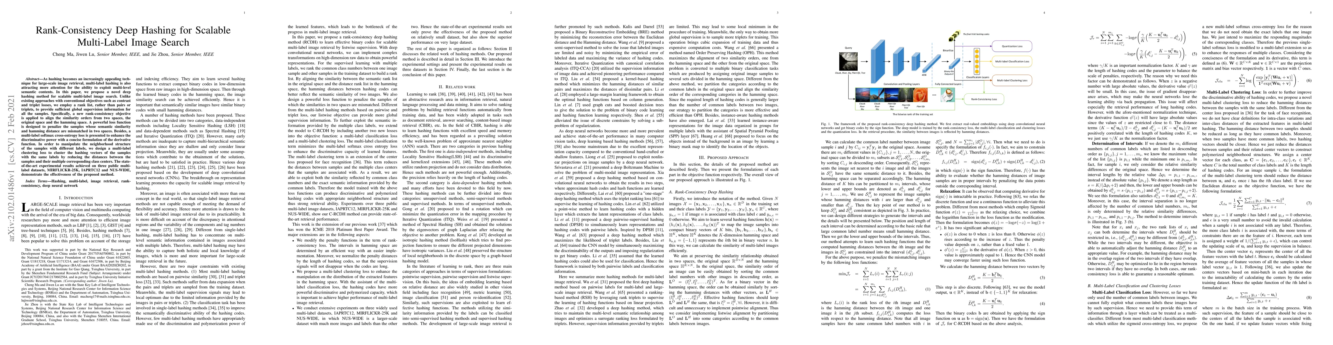 This paper proposes a novel deep hashing method for scalable multi-label image search, utilizing rank-consistency to align similarity orders across original and hamming spaces. The method incorporates a multi-label softmax loss and a multi-label clustering loss to enhance discriminative power and manage sample neighborhood structures.