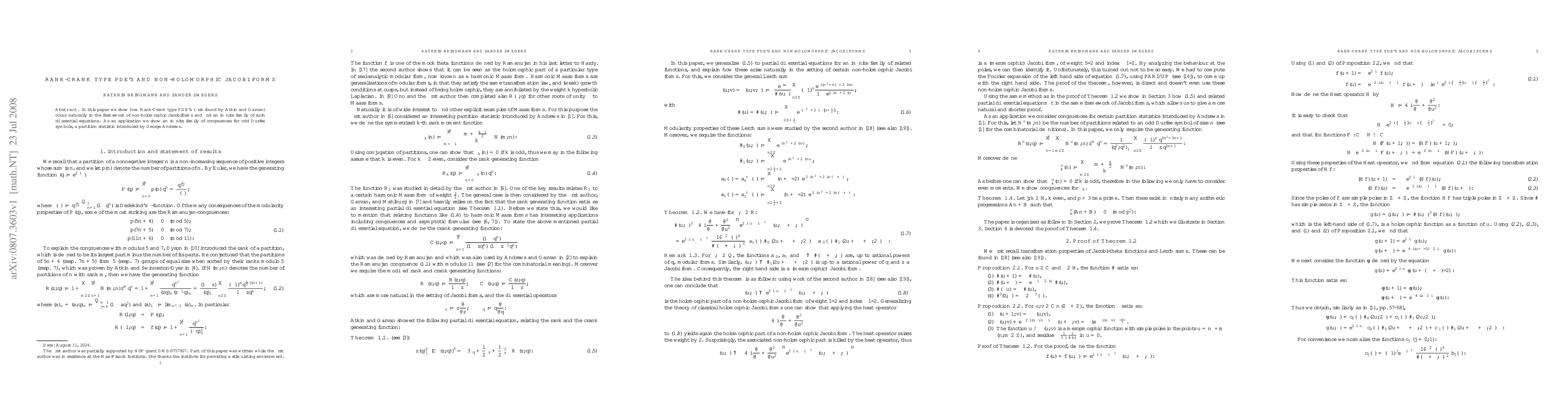 Researchers discovered an infinite family of differential equations related to Rank-Crank type PDE's, connecting them to non-holomorphic Jacobi forms, with implications for partition statistics like Durfee symbols.