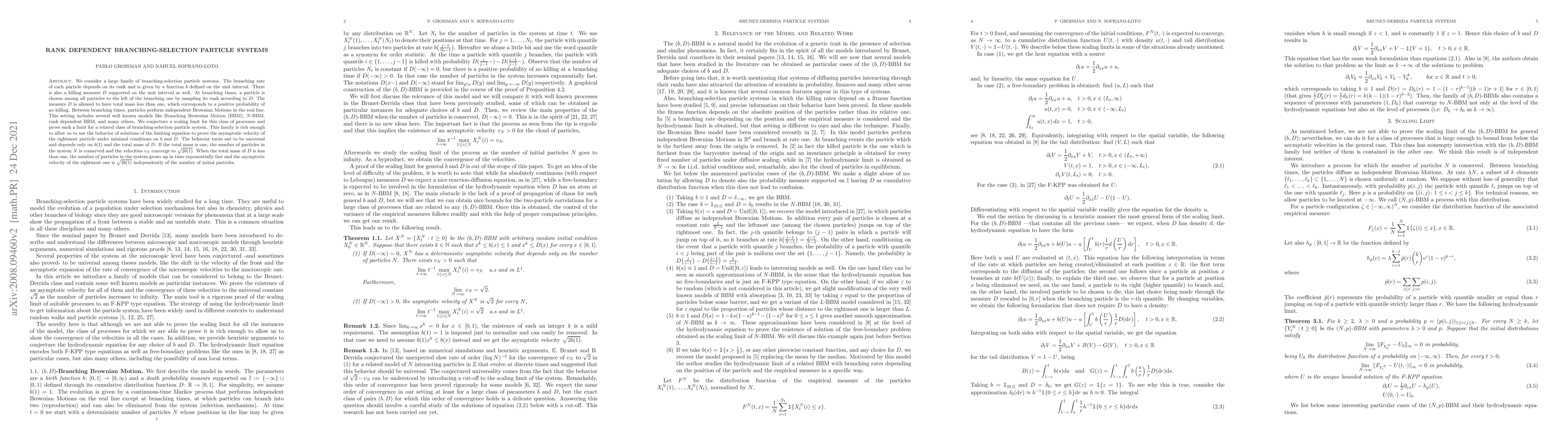 This paper investigates a class of branching-selection particle systems, proving a scaling limit for several well-known models and showing that the asymptotic velocity of the rightmost particle depends on the function b and the total mass of the killing measure D.
