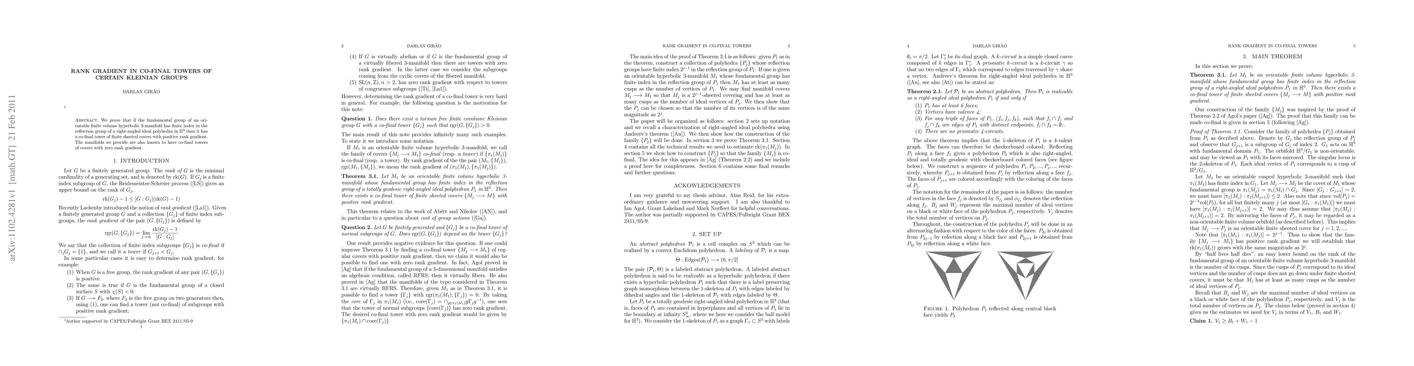 We prove that if the fundamental group of an orientable finite volume hyperbolic 3-manifold has finite index in the reflection group of a right-angled ideal polyhedra in $\mathbb{H}^3$ then it has a co-final tower of finite sheeted covers with positive rank gradient. The manifolds we provide are also known to have co-final towers of covers with zero rank gradient.