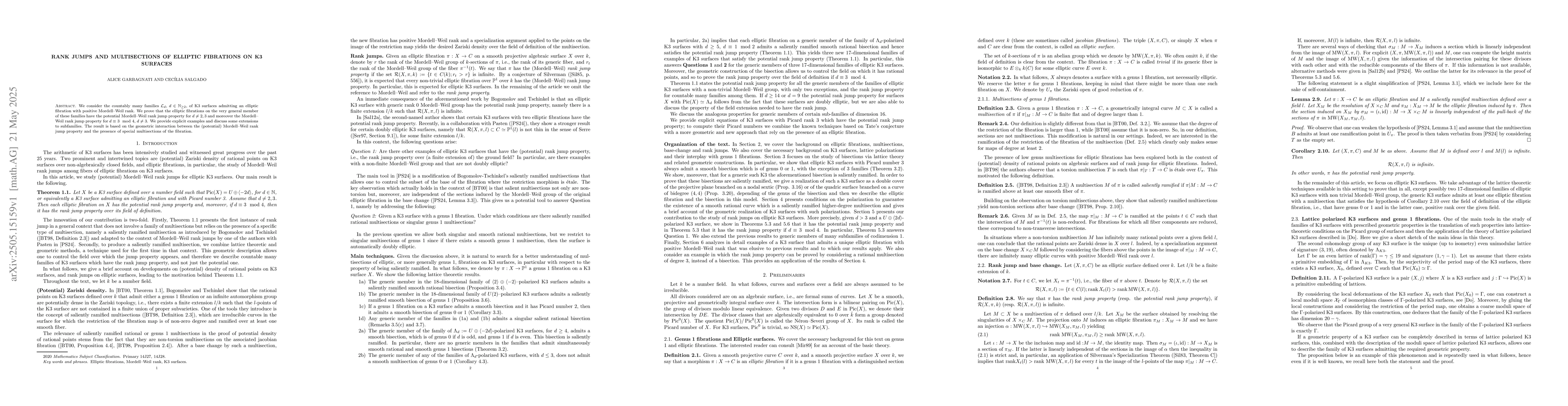 Researchers prove elliptic fibrations on K3 surfaces have specific properties related to Mordell-Weil rank jumps, providing insights into the geometry of these complex surfaces.